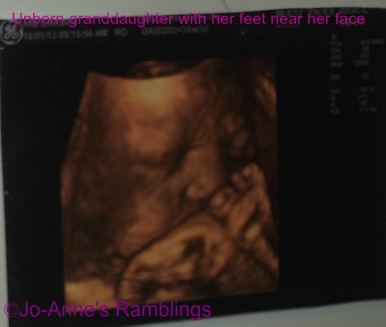 I just thought I would share with you the photos of my unborn granddaughter…………isn’t it amazing that we can get such photos of an unborn child. When I had my girls the ultrasound was nothing like this in fact it could be difficult to make out some parts of the baby. Also when these 3d ultrasounds first came out you had to pay extra to have it done and get a photo of the baby now days not the case at some xray places…………