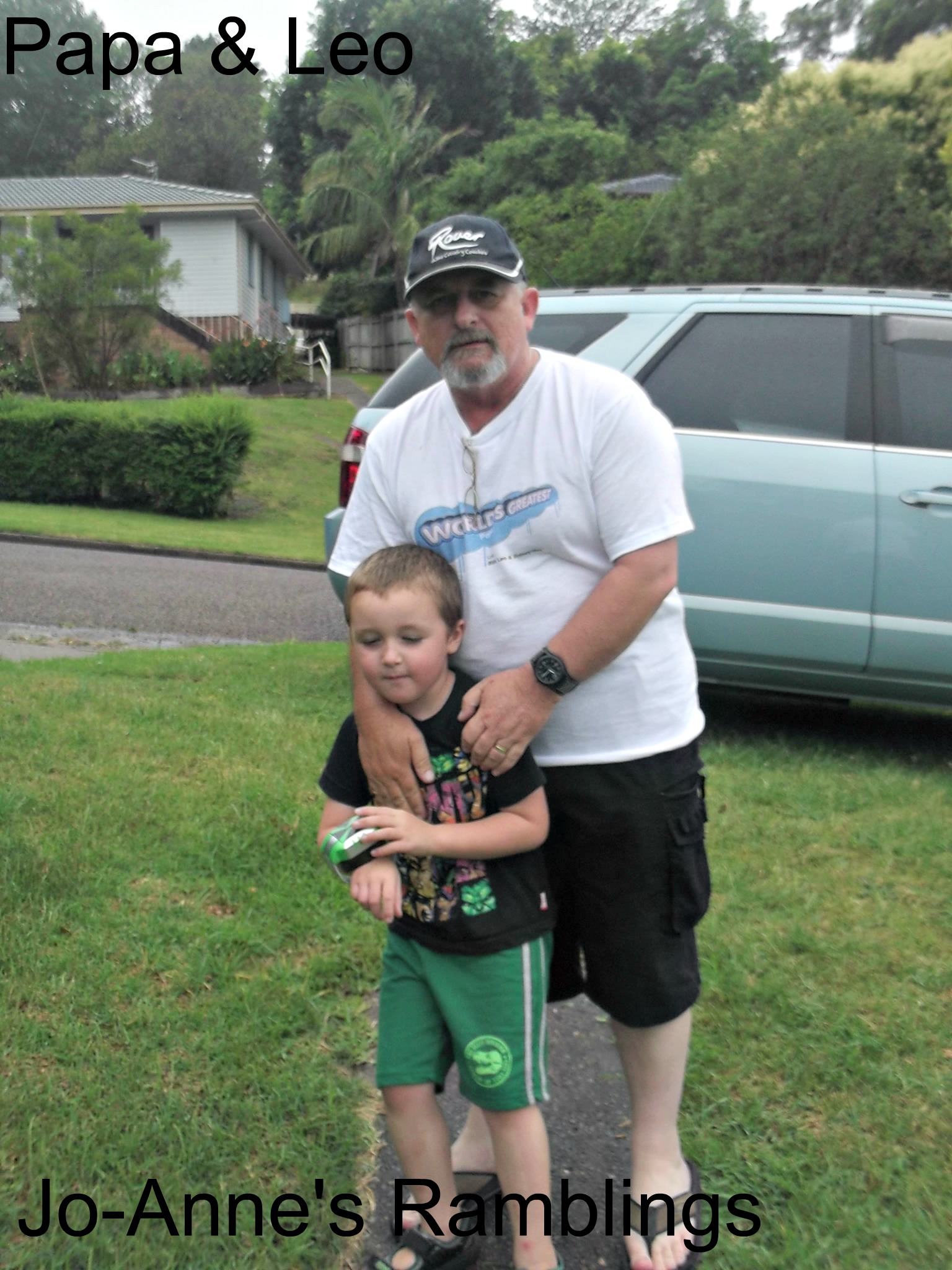 On Friday night while Leo was here he wanted an Iron Man toy which he didn’t have any way Tim decided to calm him by promising to take him shopping on Saturday to buy an Iron Man toy, so Saturday morning comes and of course Leo hadn’t forgotten he wanted to know when the shops would be open for papa to take him to get his Iron Man toy. So anyway we did take him shopping and he did find the Iron Man toy he wanted, after he got his toy and we were coming home we called in at my parents place for me to pick something up and while we were there my sister Sue asked him if he (Leo) would give Daemon a hug from his nanna when he (Leo) went home.