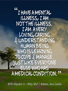 Mental illness is a real illness there are many who do not seem to think so, to me it doesn’t matter if it is depression or something like bipolar it is real and if a person is prescribed medication for it they should take said medication. It bothers me when I hear certain people I know say that some family members do not need their medication, would they say that if the person had a heart condition, high blood pressure of even diabetes.