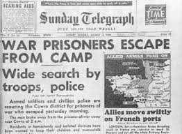 Cowra is in New South Wales, near Bathurst during the second world war it was the site of a prisoner of war camp. It housed mostly Japanese and Italian prisoners, with some Korean and Indonesian civilians detained at the request of the Dutch East Indies government. It began operating in June, 1941, specially built to house POWs brought to Australia from overseas.